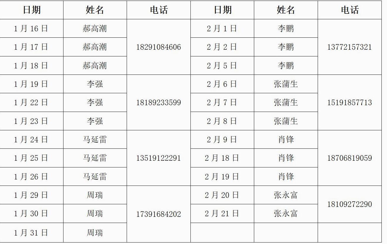 现将寒假司机值班安排发布如下: