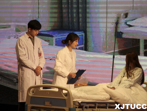 本次大赛历时一个月,经过前期宣传、专业课教师全程指导、初赛选拔,最终有4个作品进入决赛。大赛在2019级同学表演的健康操后正式拉开帷幕。首先,许栘璇等同学表演的《感恩的心》带领大家重温了2018年汶川地震的情景,让我们体会到了医护人员在灾难和死神面前的不屈不挠、舍己救人的精神,充分展示了医护人员忠于职守的高度责任;武艺文等同学表演的《守护生命的男天使》告诉我们应该摒弃以往的传统观念,认识到男护在护理岗位中同样扮演着十分重要的角色。大赛进行到中场部分,穿插了具有专业特色的节目——《护理技能操作》和《护理礼仪展示》,体现了新时代护士的专业素养,树立了白衣天使的形象。随后,由王爽等同学表演的《麻辣护士变型记》充分体现了作为一名护士应该有的专业技能和高尚品德;王鑫等同学的作品《明天会更好》刷新了大家对艾滋病的认知,我们应该给予艾滋病人更多的关爱与帮助。