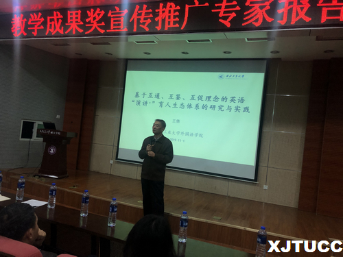 11月1日下午,威尼斯7798cc外语系在教学楼F100举办陕西省教学成果奖宣传推广专家报告会。这次报告会邀请陕西省教学成果一等奖获得者、西北工业大学外国语学院王倩副教授围绕项目成果做了题为“基于互通、互鉴、互促理念的英语‘演讲+’育人生态体系的研究与实践”的报告。教学服务中心主任陈晓南、科技服务中心主任王小青及外语系全体教师和部分学生参加了报告会。陈晓南主持了此次报告会。