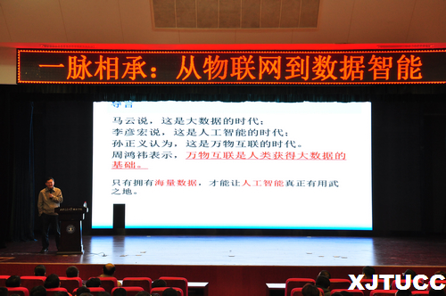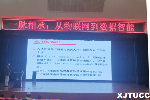 10月18日下午,计算机系与电信系共同在教学楼二楼报告厅举办题为“一脉相承----从物联网到数据智能”的学术报告会,此次报告会由西安交通大学电子与信息工程学院副院长、博士生导师桂小林教授主讲。计算机系和电信系主任和副主任等两系相关专业教师以及400余名学生参加。报告会由计算机系李联宁老师主持。