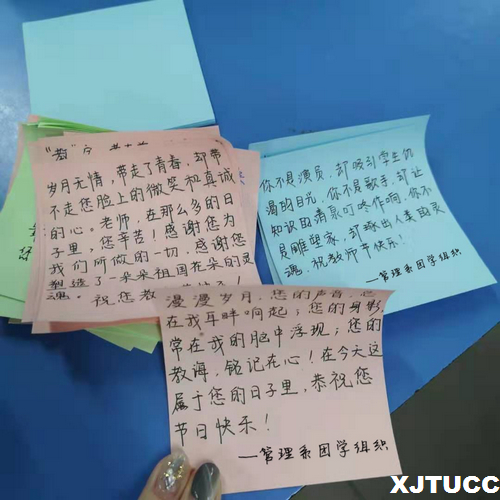 为庆祝第35个教师节到来,感谢各位老师的辛勤付出,管理系于9月10日开展了教师节送祝福活动。
