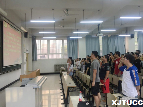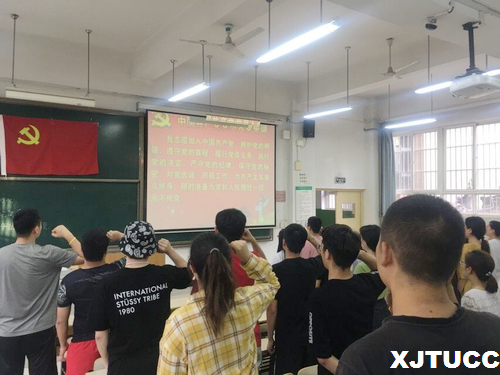 首先,学生党支部书记首先要求大家背诵《入党誓词》,在高亢雄壮的《国际歌》中全体党员面对党旗庄严宣誓,向党组织表明了承担政治责任的积极意愿,表明了自己对共产主义的坚定理想信念和为党的事业奋斗终身的坚定信心。