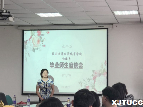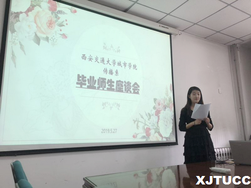 座谈会以一段回忆录拉开了序幕,大家跟随着视频回忆了一遍四年的大学生活,这一切仿佛都刚刚发生。在这四年里,有欢笑有泪水,有老师的关爱和同学的帮助,难以忘怀。随后,进入了“回梦青春”环节,何欣婷和谭煜婷同学带来了歌曲《有可能的夜晚+那些花儿》、张坤同学和张六一同学带来朗诵诗短篇。在朗诵之前,张坤和张六一同学作为班长,仍然履行职责,进行点名。在动听的歌声和用情至深的朗诵中,我们更能体会到大学四年的友谊多么值得去珍藏。接着,进入了“我想对你说”环节,由吕苗和王锦两位同学分别分享了自己在毕业来临之际想说的话,她们畅谈了对大学生活的感悟,总结了在校求学的丰硕收获,同时也感慨时光飞逝,表达了对学校感激与不舍之情。