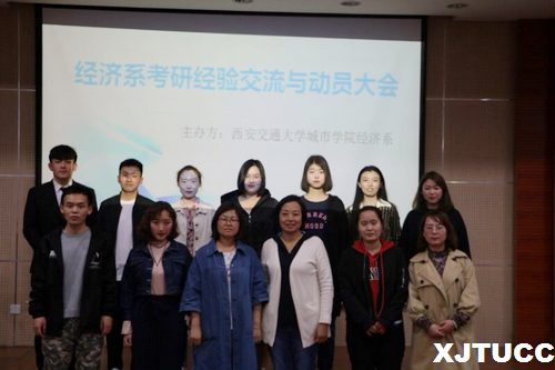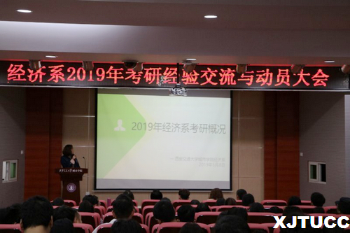 大会伊始,由蒋老师对15级经济系今年考研整体情况进行说明及分析。她指出在甄选学校及专业时要扬长避短,着重实际,避免调剂,坚持到底。接着五位考研成功的学长学姐向同学们分享了自己的学习经验,就时间安排、专业选择、院校抉择、学习计划及心态问题做了详细的介绍,本着以专业上发展第一,兴趣第二为原则,一定要调整好心态,每年12月份考研的同学在此时都会有一个低落期,一定要坚持到最后,稳住心态才有机会成功。