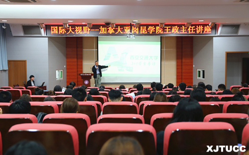 2019年4月12日中午,加拿大亚岗昆学院国际部王政主任来访威尼斯7798cc,为管理系工商管理和人力资源大二、三年级,经济系金融专升本、外语系专升本的同学们开展了主题为“中西方学生大学四年规划差异比较”的讲座。