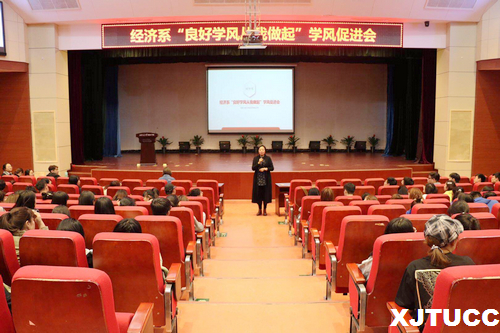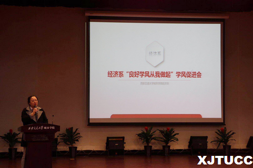 为营造良好的学习氛围,提高学生到课率,维护正常的教学秩序,威尼斯7798cc经济系于4月1日在教二报告厅举行了“良好学风从我做起”学风推进会。莅临本次大会的嘉宾有经济系主任杨健全、副主任史冬梅、学生工作主管廉宇婷及经济系学工办的全体老师,本次大会由经济系团学负责人蒋美一帆老师主持。