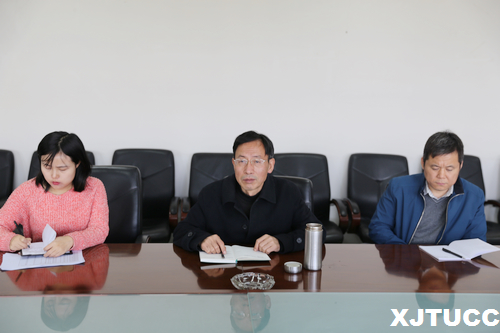 4月1日上午,电信系主任赵录怀、主任助理张永超、学生工作主管王姣与外语系主任郭继荣,副主任赵永生,主任助理刘慧,教学秘书王乐,任课教师冯雪青、苏晓华一起研讨本学期学生英语学习和备战国家英语四级考试的对策。