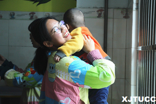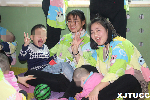在福利院老师的带领下,我们对这里生活的孩子有了初步的了解,包括在照顾孩子时候的一些注意事项。大家的心里充满不忍和心疼,希望能在下午的相处中用自己的拥抱去温暖他们。在等待孩子们午睡结束的时间里,志愿者们也在有条不紊的进行着准备工作:洗手、换育婴服等等。在进入房间后,大家和孩子们迅速融为一体,欢声笑语充满了整个房间。