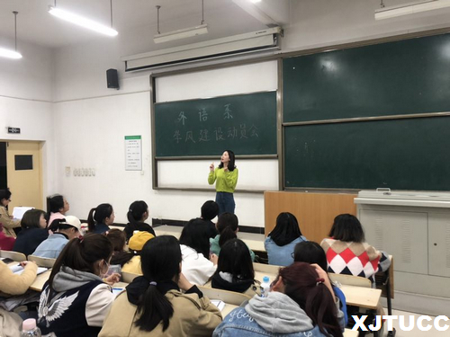 为进一步推进我系学风建设,营造良好的学习氛围,外语系于3月26日下午在E200教室开展外语系学风建设动员大会。本次动员会由外语系学生主管张天老师、团委书记蔺一方老师主持,外语系2016、2017、2018全体学生参加。