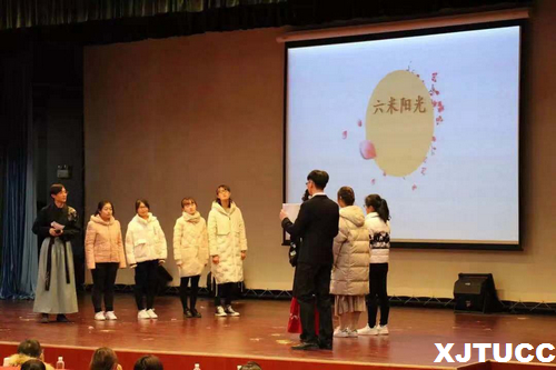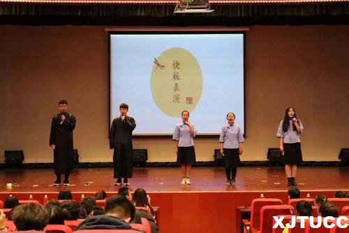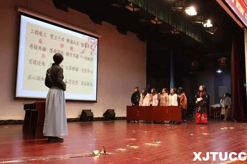 随着《蜀绣》的舞蹈音乐响起,此次比赛拉开帷幕,夺目的旗袍为舞台染上了浓厚的古风气息,美轮美奂的舞步与荡气回肠的音乐营造了整场演出的良好氛围。六组成员依次上台介绍团队名称及口号,由主持人向大家讲解比赛要求。然后比赛正式开始,比赛分为“才子佳人”成语改错、“出口成章”古诗句对接、“见形说义”看图说话、“心有灵犀”你比我猜四个环节比拼。在比赛中,同学们拿出必胜的热情,在每一个环节都配合出完美的默契,而精彩的快板表演也让全场活动都充满了欢声笑语。