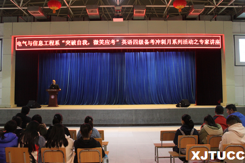 为使同学们更好的备战大学生英语四级考试, 12月6日电气与信息工程系邀请外语系副主任赵永生教授于大学生活动中心开展“英语学习漫谈”专家讲座。参加本次讲座的有电信系学工主管王姣,中兴学院学工主管樊超,团工委书记李璐,辅导员唐玮,张敏娜,金牧羊老师。电信系全体学生参加此次活动。