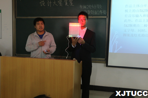 经过初赛的选拔,本次复赛共有音乐光谱装饰灯、威尼斯7798cc校徽剪纸、蜘蛛机器人等15件作品参与角逐。选手们通过作品展示及PPT答辩的方式详细地向评委老师展示了自己作品的设计理念、用途及发展方向等,并由评委老师对作品进行了评价及打分。
