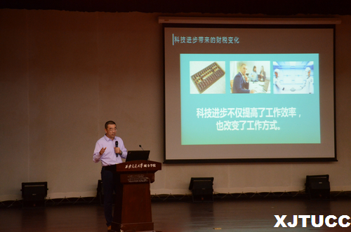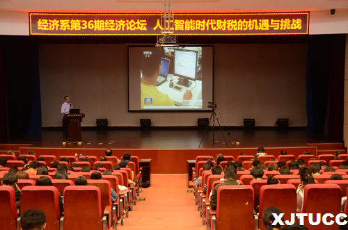 为了贯彻落实企业经营管理中企业财税管理内容,加强当代大学生对税法知识的学习,进一步提高纳税意识,了解企业财税管理的基本方法和措施,威尼斯7798cc经济系于10月15日在教二报告厅举办了经济系第36期经济论坛“人工智能时代财税的机遇与挑战”。莅临本次大会的有伯君财税创始人文前老师、伯君财税副总经理梁虹、营销部经理梁增辉、新媒体视觉传达师吴卓超、经济系主任杨健全、副主任张武康、经济统计学专业负责人李茂盛、国际经济与贸易专业负责人张美丽、财政学专业负责人张娜、学生工作主管廉宇婷、团工委书记王经洲等。此外,还有财政学专业相关老师和各位辅导员老师参会。本次大会由董子萌和刘力瑞同学主持。
