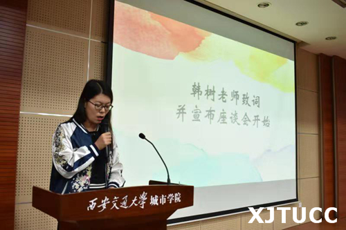 团委韩树老师发表致辞,她指出院系学生会的合作对于发展我院学生会工作的重要性,鼓励院系学生会应深化友谊、加强合作、密切沟通,并对学生会成员提了几点要求:第一,希望学生会干部谨记身份和职责,放下架子,切实做好自身工作,维护学生的根本利益;第二,希望学生会成员能够增强组织观念,营造集体荣誉感; 第三,院系学生会应该正确处理相互关系,互相依赖、共同合作,扭成一股绳,彼此互帮互助、共赢发展。致辞结束后,韩树老师隆重宣布本次院系交流会正式开始。