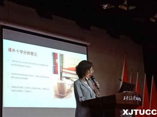 蒋老师提出课外十学分的实施目的是为了督促大学生合理规划课余时间,培养激发他们的创造力、挖掘潜能、优化知识结构、提高综合素质能力。通过详细讲解课外学分的内容及包含的多个类别,蒋老师以举例的形式向同学们分析了各种活动所属的类别、各类活动的实施细则及各活动项目的评分要求。随后,蒋老师进行学分认证的操作演示,从网站登录到学分查询,强调了申请条件,以答疑的方式解答了同学们提出的申请过程中经常会出现的错误操作,避免了同学们因不熟悉步骤而引起的一系列问题。