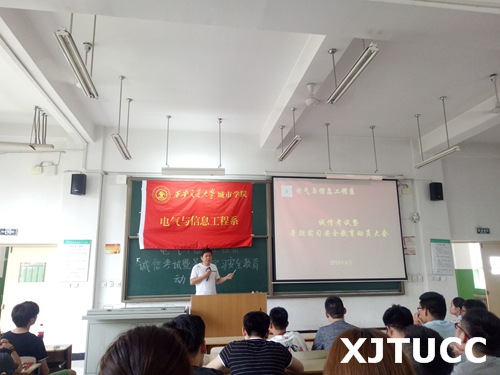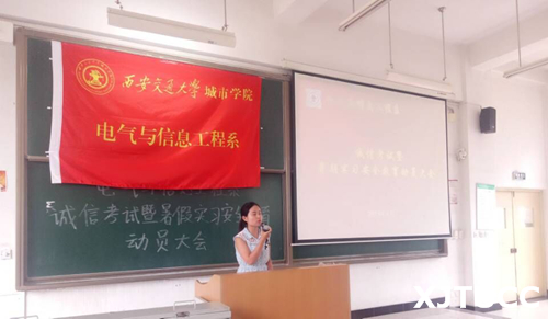 为加强学风建设,严肃学院考风考纪,确保学生的假期安全,西安交大威尼斯7798cc电气与信息工程系于6月29日在教学楼A200面向2015级全体学生开展了诚信考试暨暑期实习安全教育动员大会。出席本次大会的有电信系主任助理张永超、学生工作主管王姣、团工委书记李璐及2015级全体学生。