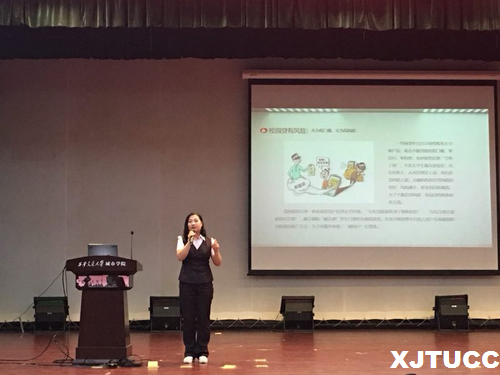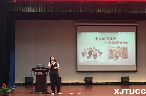 大会伊始,由两位优秀毕业生代表为大家介绍他们毕业后的工作经历,并且热情邀请同学们在暑假去其所在银行实习。接着由招商银行和平路支行尹舒雨女士就如何识别和对待不良网贷、防范网络电信诈骗、培养和树立理性消费观念等问题进行深入浅出的讲解。其中尤为严重是大学生校园贷,尹女士结合实际事例告诫同学不要因为自己的虚荣心或对各种高端电子产品,名牌服装的追求而走上错误的道路,增加家庭的负担,甚者赔上自己的生命。最后由史冬梅老师总结发言,史老师就校园贷谈自己的看法,教导学生不要依靠校园贷,否则不仅给学生带来经济上和心理上的负担还会陷入新债换旧债的死循环,同时呼吁同学们提高互联网金融风险意识,树立正确消费观,共同创造良好的大学生学习氛围。