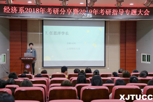 为了提高同学们的考研热情,增强同学们的考研信心与决心,为考研的同学提供一个学习交流的平台,威尼斯7798cc经济系于4月16日下午在F100举办2018考研分享暨2019年考研指导专题大会。出席本次大会的领导老师有经济系主任杨健全老师、副主任史冬梅、张武康老师、团工委书记王经洲老师、学工办申锐、关天骄老师。大会由高田同学主持。