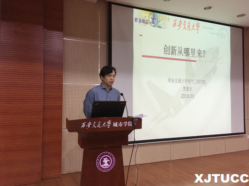 电气与信息工程系于3月28日下午在F100召开了第二十四期名师讲堂,主题为“创新从哪里来”,本次的主讲人为西安交通大学电气工程学院曹建安教授,我院测控专业首席教授杨拴科老师及电信系全体大一学生参加了此次讲座,本次讲堂由电信系学工办唐玮老师主持。