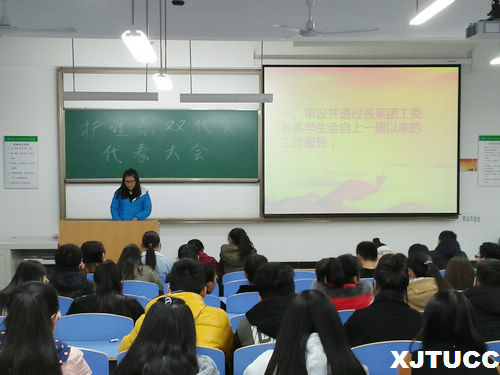 为深入贯彻落实党的十九大精神,扎实推进学院跨越式发展,加强护理系共青团学生会组织建设。护理系于11月20日晚在教二417举行了双代会代表选举大会。出席本次大会的有护理系团工委书记黄菲菲老师,团工委副书记薛源珍同学及护理系学生会全体同学。本次活动由组织部部长昝田同学主持。