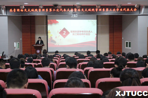 夯实基础,砥砺前行。为深入贯彻落实党的十九大精神,扎实推进学院跨越式发展,加强我院共青团学生会组织建设,进一步总结经验、发扬优良传统、探讨新时期共青团与学生会工作的新路子、新方针、新举措,西安交大威尼斯7798cc管理系于11月16日晚在F100举行了共青团西安交大威尼斯7798cc管理系第二次代表大会暨管理系第三次学生代表大会。莅临本次大会的有管理系常务副主任冀祥,学院团委书记吴昊翔、管理系团学专项负责人吴江菊。
