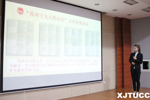 大会伊始,团委组织部副部长李炳儒同学上台宣读了本年度各参评支部的日常考核结果,紧接着组织部副部长马宇琦同学上台宣读初审答辩的评分标准。随后,来自全院各系推选的二十二支团支部围绕团日活动启动仪式、主题团会、校内展示、宣传推广、校外活动总结等多个方面深入阐述了各支部的主题团日活动。在宣传方面,部分团支部的团日活动分别得到了陕西卫视、陕西微博等各大传统媒体和新媒体的报道和传播,同时学院各微信公众平台上也积极做出同步推送。各支部积极走出学校,到企业、银行、其他高校等单位进行交流学习,各支部在实践中学习、领会、贯彻落实党的十九大的精神内涵,得到了校内外师生、市民的充分肯定和鼓励。
