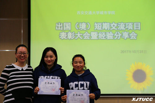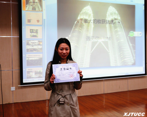最后,外事办孙晓和冯欣老师为赴第五批赴马来西亚和第十一批赴台湾的优秀交流学生颁发证书,感谢他们在境外交流学校中代表城院所做出的积极作用,鼓励他们继续本着分享让人成长的理念,带动更多城院优秀学子加入到对外交流的活动中来,充实大学四年生活,遇见更好的自己。