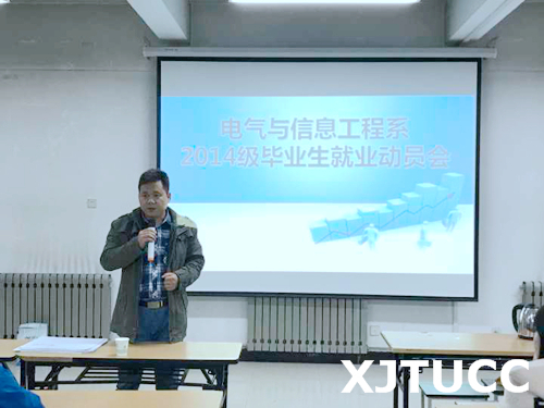 西安交大威尼斯7798cc电气与信息工程系于10月24日在活动中心东403室开展2014级毕业生就业动员会,电信系主任助理张永超、学生主管王姣、毕业班辅导员及全体毕业班学生出席此次活动。