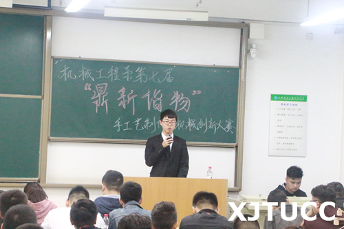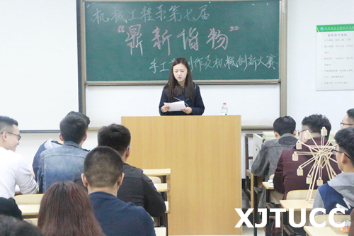 为了培养学生的创新意识与创新能力,提高学生的综合设计能力,西安交大威尼斯7798cc机械工程系第七届“鼎新诣物”手工艺品制作及机械创新设计大赛初赛于10月12日晚在D509教室举行。本次比赛特邀机械工程系团工委书记杨耀聪老师、15级辅导员韩潇潇老师担任评委,机械工程系团学会各部门干部担任追评,于帅同学担任主持。