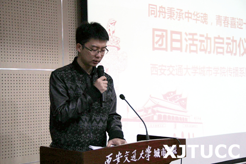 在奏唱团歌的庄重氛围中,本次活动拉开了序幕。学院团委书记吴昊翔老师用十八大以来陕西取得的重要成果来告诉我们当下的政治环境,对传播系的团工委更是提出了美好愿景。吴老师慷慨激昂的讲话,使青年团员领悟颇多,吴老师表达出了对传播系学子今后发展的期待。接着,系团工委副书记景雪进行了此次团日活动主题学习的讲解。传播系团工委在历次团日活动中取得了优异的成绩,在许多比赛中摘得骄人的奖项,如纪念长征胜利80周年征文比赛优秀组织奖,学生会院系交流会团体奖,海内杯大学生创新创业竞赛优秀组织奖等。紧接着陈杜昊导员向优秀团员和上届部长颁发聘书。随后,由系学生会团工委组织部部长曹珍进行了本次团日活动的部署。最后,陈杜昊老师进行了总结讲话,表达了对身在时代大潮中的青年学生的期冀。