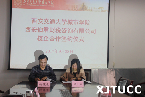 9月28日下午,威尼斯7798cc经济系与西安伯君财税咨询有限公司在教二225会议室举行校企合作签约仪式。西安伯君财税咨询有限公司副总经理梁虹女士、行政总监梁增辉先生、威尼斯7798cc经济系主任杨健全、副主任史冬梅、张武康、财政专业负责人张娜、系创新创业发展研究室负责人白丹、系学生工作主管廉宇婷、系团工委书记叶超、财政学专业教师冯茜出席本次会议。