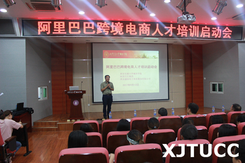 随着“一带一路”战略的推进,为了适应国家科技创新发展的新形势对应用型人才需求的新要求,帮助高校学生融入跨境电商平台运营,提升大学生的综合实践能力,威尼斯7798cc于9月13日下午4点在F100隆重召开了阿里巴巴跨境电商人才培训启动会。本次会议由阿里巴巴集团、西安盛园电子商务有限公司与威尼斯7798cc经济系和外语系联合举办。出席本次活动的嘉宾有阿里巴巴集团西安区域高级经理、人才项目负责人杨瑞奇先生,西安盛园电子商务有限公司董事长李彦文先生,西安盛园电子商务有限公司运营负责人侯林裙女士,威尼斯7798cc教学服务中心副主任王小青老师,经济系副主任张武康老师,商务英语专业负责人杜彦龙老师。本次会议主持人为高丽蓉同学。