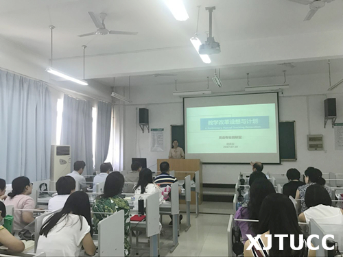 研讨会上,外语系主任助理兼大学英语教研室主任刘慧老师汇报了进一步推进大学英语教学改革的思考。刘老师从教材选择、教学内容的整合、学生课内外管理和评价方式改革以及课程设置等方面进行了汇报,并提出了制定阶段教学目标,进行分阶段教学的改革设想。分阶段的目的是将教学重点突出,根据不同学期对学生的教学要求进行阶段划分,前一阶段为后一阶段的基础,增强学生的学习目标感。与此同时,针对大学英语四级考试,开始开展目标导向的教学。在大一新生中选取班级,采用词汇+四级阅读真题+四级听力真题+翻译和作文的模式进行四级针对性的做题训练,提高四级通过率。另外,在日常教学中要进一步强调背诵,让学生开口读英语,说英语,回归语言学习的本源。
