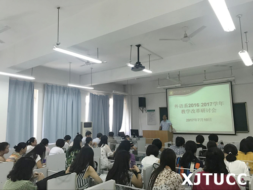 7月10日下午,外语系在教学楼B304教室召开了教学改革研讨会,旨在总结2016-2017学年的教育教学改革经验,进一步明晰思路、凝练特色,提前谋划下一学年的教学改革目标和任务,切实提高教学质量。会议由外语系常务副主任韩红建副教授主持,外语系全体教职工参加了会议。会上,外语系大学英语、英语专业和日语专业教研室主任分别就下学年的教育教学改革计划进行了专题汇报发言,各位教师代表也逐一发言。