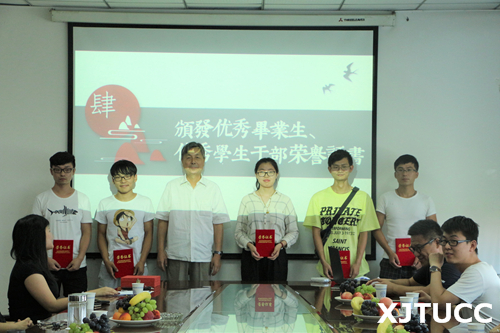 座谈会伊始,刘吉轩主任首先代表机械工程系向2017届毕业生顺利毕业表示衷心祝贺,祝愿即将离校的毕业生身体健康,前程似锦!在这离别情深之时,2017届毕业生代表向我系赠送临别纪念品。随后,由鲁睿娇老师宣读关于成立《机械工程系2017届毕业生联络员工作组》的决定,并由刘吉轩老师向联络员颁发聘书,傅秦生老师、王毅老师分别向2017届优秀毕业生、优秀毕业生干部颁发证书。