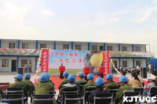 4月23日,威尼斯7798cc团委支农促进会的同学们在西安市陕建一建重型机械工地上举办了一场“五一工地义演”活动,此次活动由我院支农促进会主办,其他各高校倾情参演,为陕西建工第一建设集团有限公司的工人朋友带去关怀,拂去疲惫,让他们在闲暇之余也体会到轻松与快乐。