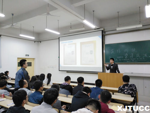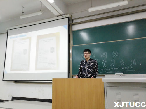 讲座还围绕四级英语阅读、听力等专项学习进行了详细的讲解,邀请的优秀学生李照宇同学结合自己高分通过四六级考试的经验向同学们传授学习方法,分享了他对于四级作文应试经验和单词记忆的学习技巧,并向大家推荐了适合锻炼听力的英文电影,激发了大家对于英语学习的兴趣。