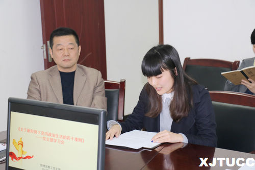 随后,屈雯同志带领大家学习了2016年10月27日中国共产党第十八届中央委员会第六次全体会议通过的《关于新形势下党内政治生活的若干准则》,逐条学习了各项准则以及准则中强调的继续以改革创新精神加强党的建设,加强和规范党内政治生活,全面提高党的建设科学化水平等重要内容。