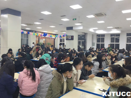 12月21日下午,由学生服务中心组织,团委联合会、学生联合会伙食权益部承办的威尼斯7798cc第十届冬至日·包饺子大赛在学院学生活动中心一层中快餐厅举行。学生服务中心后勤办公室党西峰老师、各餐厅经理、学生会主席团、学生组成的115个包饺子参赛队近700人参加了这次活动。