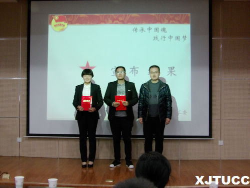 伴随着激昂的共青团团歌,主持人宣布答辩开始,首先,各团支部代表依次进行了PPT展示及精彩的答辩,各团支部围绕着启动仪式、阳光三走、校外活动、宣传互动、收获与总结等五项内容进行了精彩答辩。通过评委打分评出了一二三等奖,其中金融162团支部以其精心的策划、丰富的内容、精彩的答辩赢得了此次团日活动的第一名。接下来,老师们为获奖的团支部颁发了荣誉证书。最后,雷老师对本次团日活动进行了点评和总结,并希望各团支部能够以此次团日活动为契机,传承长征精神,践行社会主义核心价值观,通过追忆历史,面向未来,践行中国梦!