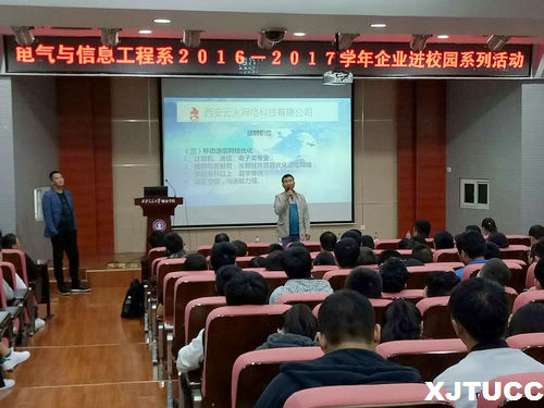 为促进2013级毕业生良好就业,10月18日晚,电信系在教学楼F100举办了“电信系2016-2017学年企业进校园”活动。本次活动邀请了西安云火网络科技公司为学生进行专场招聘,并对学生的求职技能进行了培训。电信系学生工作主管王姣、辅导员丁玎、吴瑶老师以及电信系2013级学生参加了此次活动。