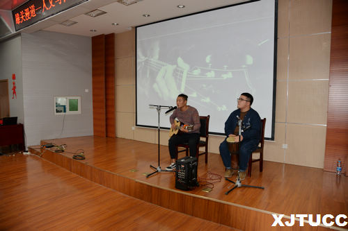 红军不怕远征难,万水千山只等闲。由张蓉教授和史正宪教授合作带来的一曲《长征七律》,尽管是清唱,但两位老师的歌声既浑厚又铿锵,一瞬间又将观众们引入了那个热血激情的岁月,精彩的表演引来了现场观众的阵阵掌声,又一次把活动现场的气氛推向了高潮。