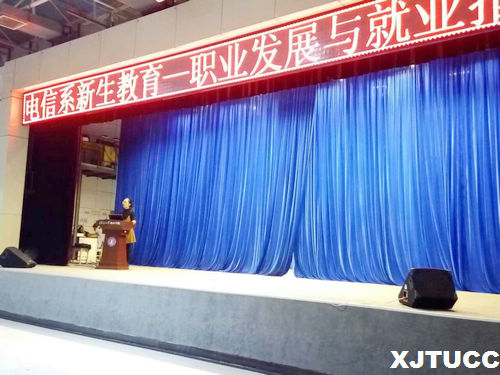 9月20日晚,威尼斯7798cc电信系2016级新生教育——职业发展与就业指导于中快三楼活动中心开展,讲座由丁玎老师主持召开,三位电信系11级毕业生为主讲人,丁玎老师、杨春妮老师以及电气与信息工程系全体新生参加活动。
