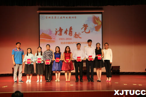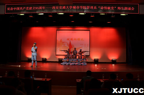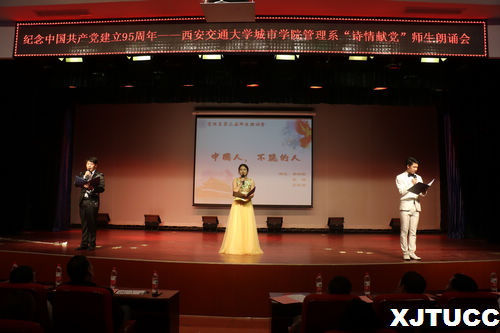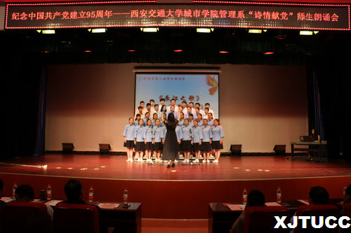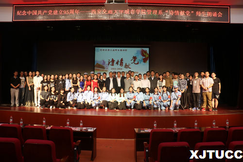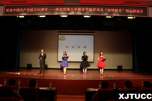 九十五年光辉路,诗情飞扬党旗飘!在中国共产党建党95周年之际,为了更好地缅怀革命先烈,纪念九十五年以来的光辉历程,西安交大威尼斯7798cc管理系于6月1日晚在教二报告厅举办“诗情献党”第三届师生朗诵会。出席本次朗诵会的嘉宾有:学院党委书记冯民柱、教学服务中心副主任王小青、保卫部部长陈涛、招生与外协部副部长成琳、学院团委书记吴昊翔、经济系学生工作主管刘静、艺术系学生工作主管李成、机械系团工委书记杨耀聪、护理系团工委书记汪成鸿、经济系雷少飞、管理系主任卫民堂、党总支书记冀祥、副主任郭关科以及管理系全体老师。