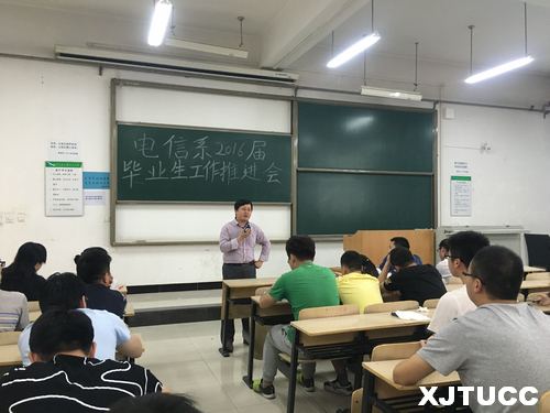 5月4日中午,西安交大威尼斯7798cc电信系在教学楼E100召开2016届毕业生工作推进会。系学生工作主管辛红伟、团工委书记张天和丁玎老师及电信系2016届全体毕业生参加了会议。