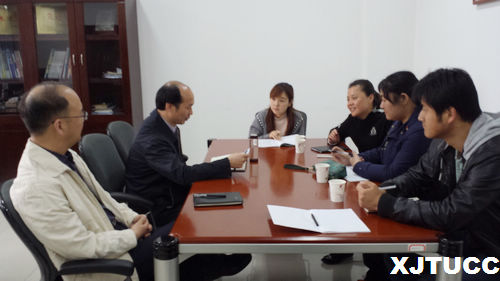 4月12日下午,西安交大威尼斯7798cc招生办公室副主任成琳一行4人到外语系调研并与外语系领导共同研讨2016年招生工作。外语系常务副主任韩红建副教授、副主任赵永生副教授、系办公室主任和学工办负责人等参加座谈。