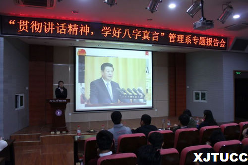 为了贯彻习近平总书记的重要讲话精神,鼓舞青年学生学习“勤学、明辨、修德、笃实”八字真言。威尼斯7798cc管理系于3月31日中午在F100举办了“贯彻讲话精神,学习八字真言”专题报告会暨干部培训大会第二讲。管理系团工委书记陈杜昊老师出席了本次报告会并讲话。
