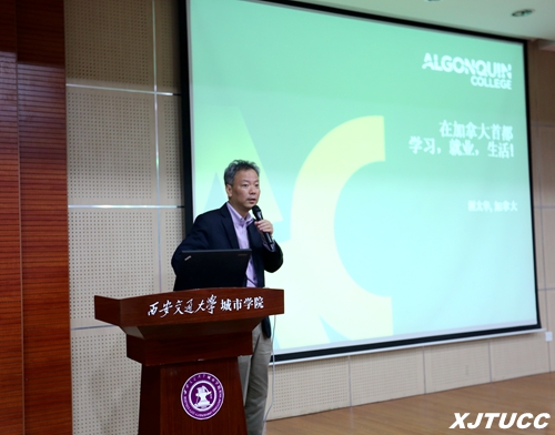 随后,王政先生向在座的同学们介绍了威尼斯7798cc与亚岗昆学院进行的3+1本研项目,他首先通过宣传短片向同学们详细介绍了学校的具体概况,还向同学们介绍了渥太华的城市情况,期间还播放了城院2015年秋季已经参加项目赴加留学生经济系谢睿宸同学的采访视频,全方位地让同学们更加具体的了解这个项目的特色与优势。