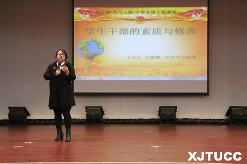 为深入贯彻落实习近平总书记系列重要讲话精神,践行社会主义核心价值观,加强团学干部队伍建设,提高大学生骨干的思想政治素质,进一步推进共青团工作,12月21日晚,威尼斯7798cc第七期“青马工程”专题讲座第四讲在教二报告厅举行,团省委学校部副部长宋薇娜受学院团委邀请为本期大学生骨干培训班作了“学生干部的素质与修养”的专题讲座。我院团委老师、各系团工委书记、学工办老师、第七期“青马工程”大骨班全体学员、院系团学干部代表四百余人到场聆听学习。本次讲座由学院团委书记曹嘉伟主持。