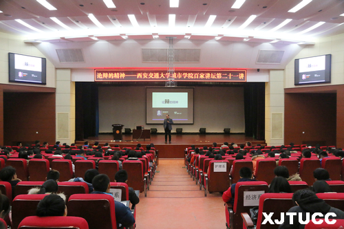 为了提高我院学子的辩论水平,满足同学们对辩论的兴趣爱好,12月17日晚,我院团委特邀请西安交通大学文治书院主任、中华名辩盟理事会常务副主席张爱萍来院为师生作题为“论辩的精神”专题报告。各系团工委书记、部分学工办老师、奕术辩论文化辩论协会会员、长安大学辩论队队员、陕西科技大学辩论队队员及其他对辩论有兴趣的同学等近500余人参加。
